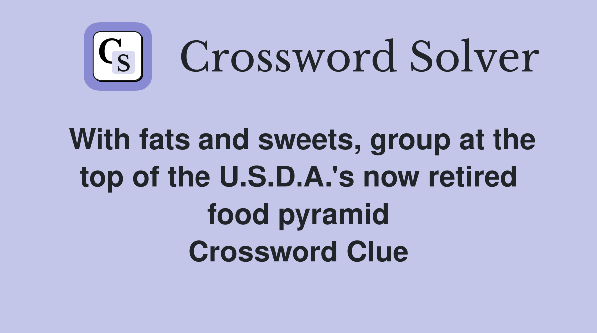 With fats and sweets group at the top of the U S D A #39 s now retired
