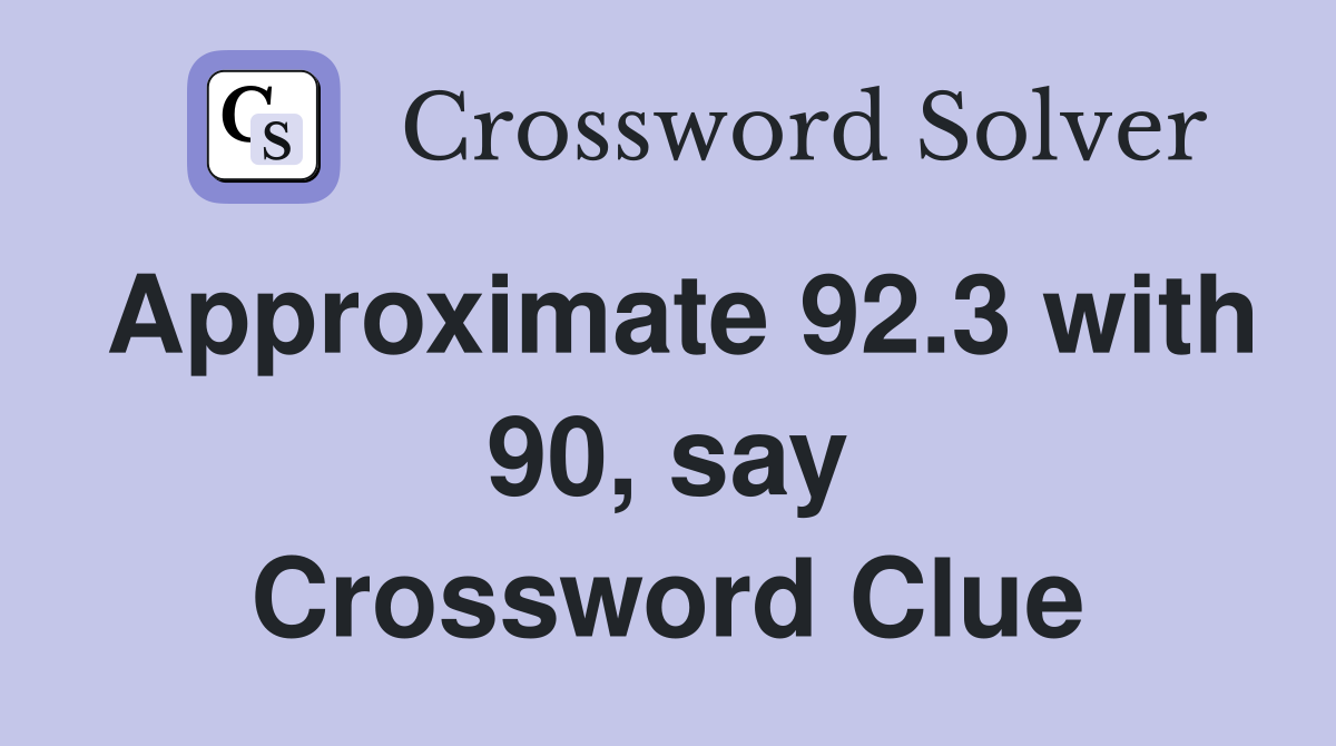 Approximate 92 3 with 90 say Crossword Clue Answers Crossword Solver