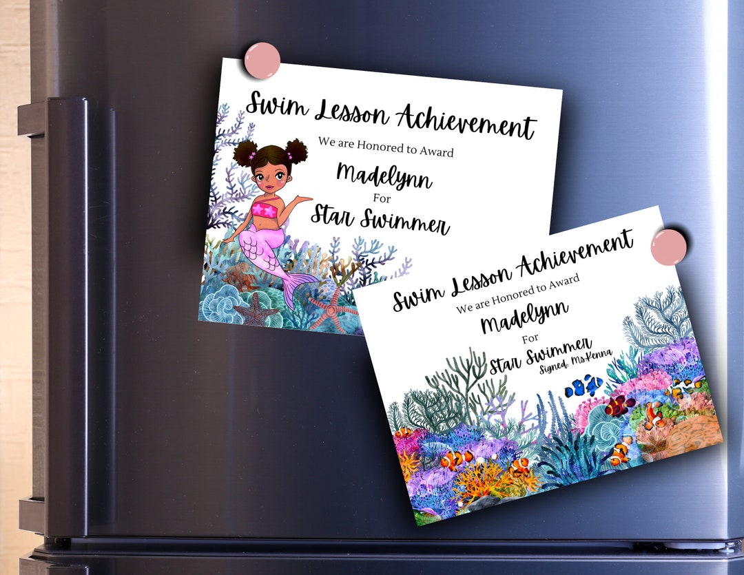 Swim Lesson Certificate Etsy