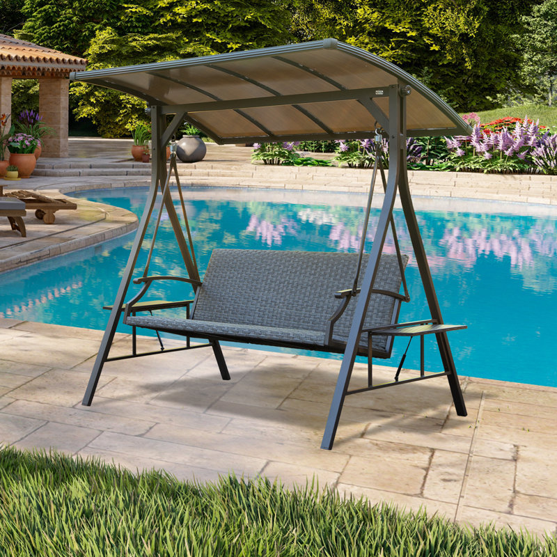 Outsunny 3 Person Porch Swing Chair with High Back Design Side Pouches