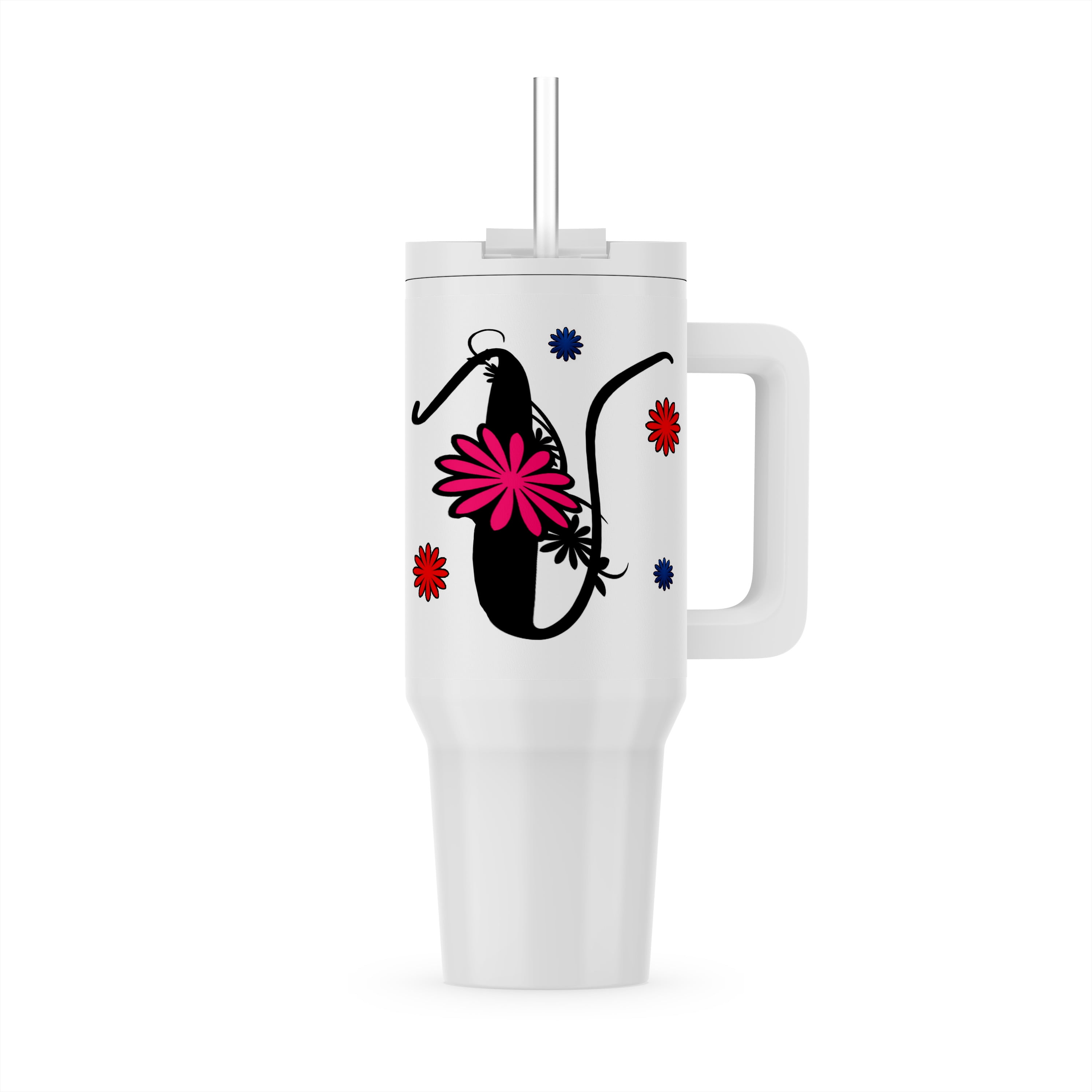 3dRose Monogram Letter V Fancy Swirly Font and Flowers 30oz Tumbler