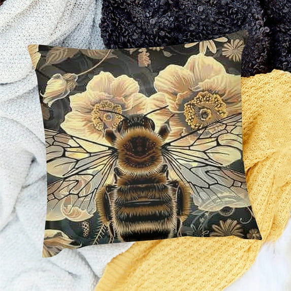 FCXZI Bee Flowers Swirly Background Pillow Case for Home Sofa Couch
