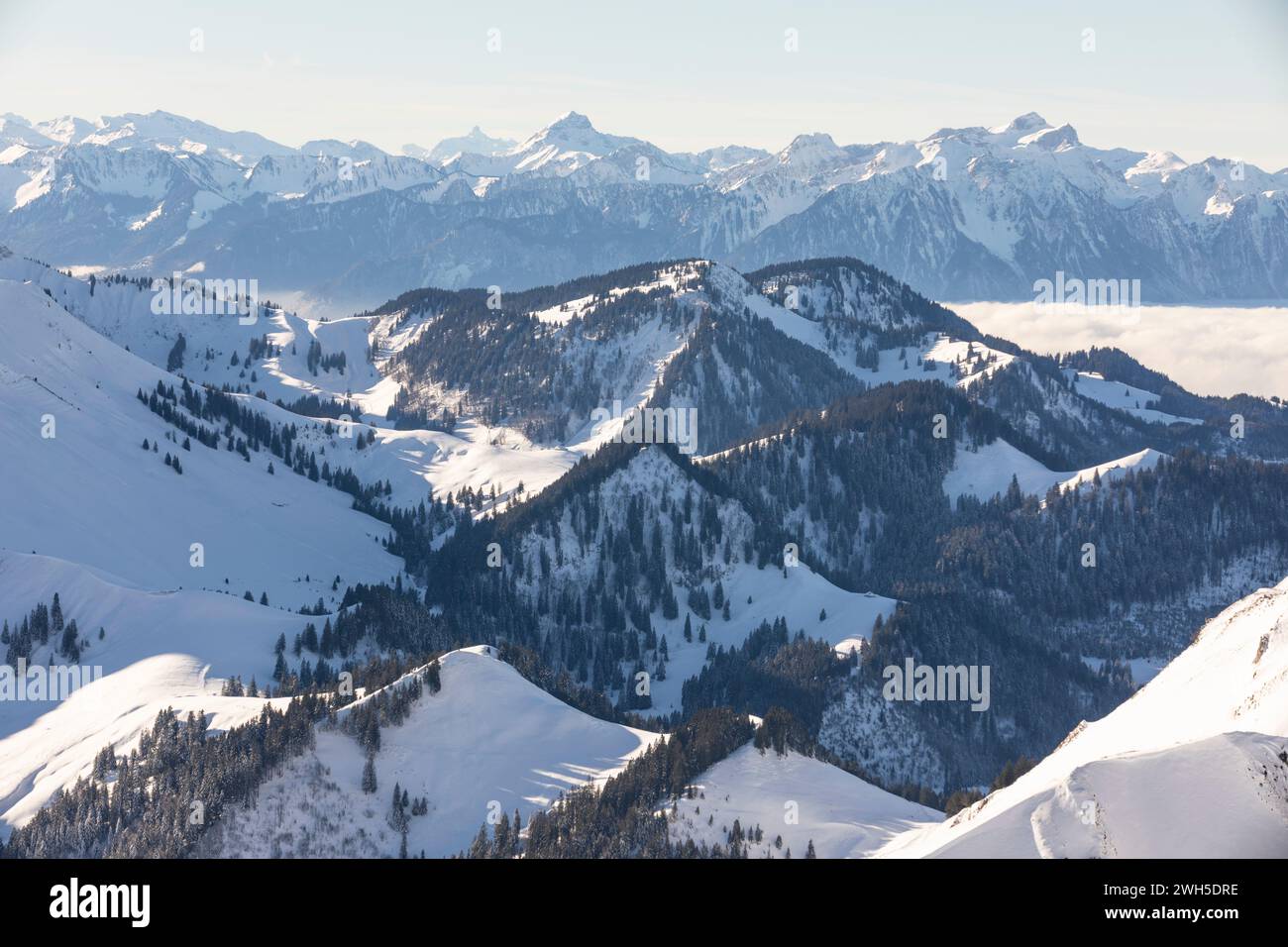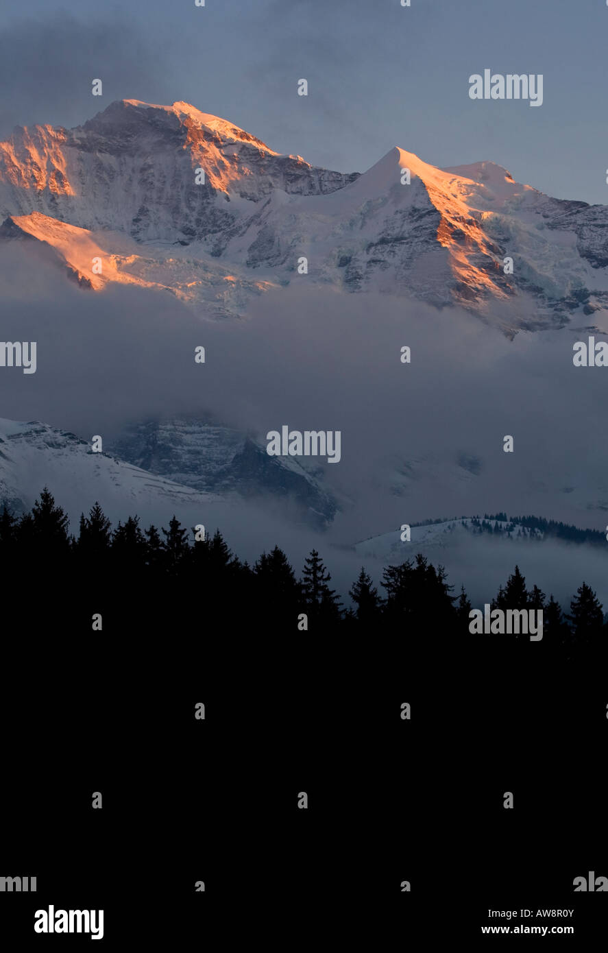 Swiss mountain range in evening light swiss oberland Stock Photo Alamy