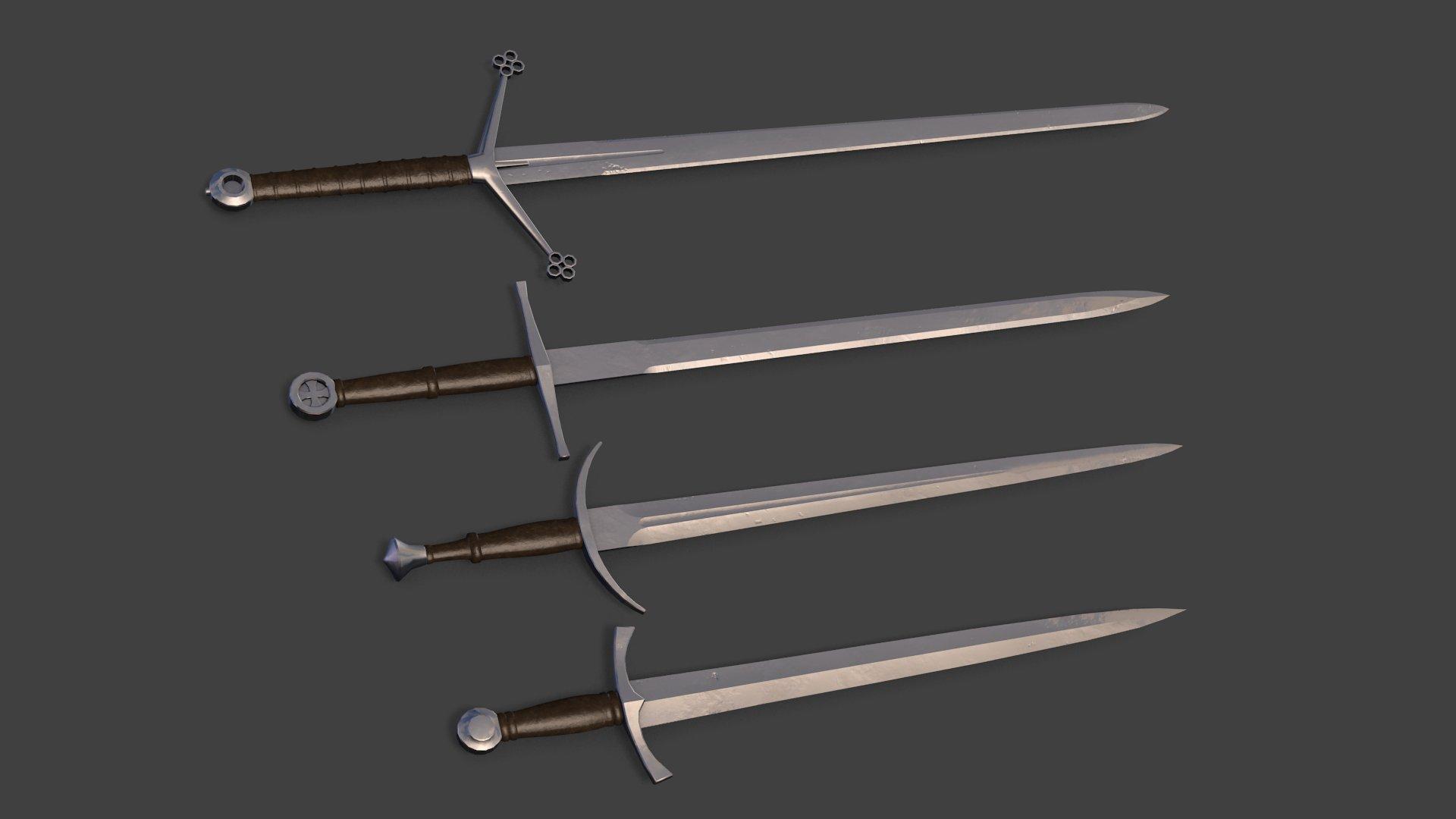 3D model sword set 2 three swords VR / AR / low poly CGTrader