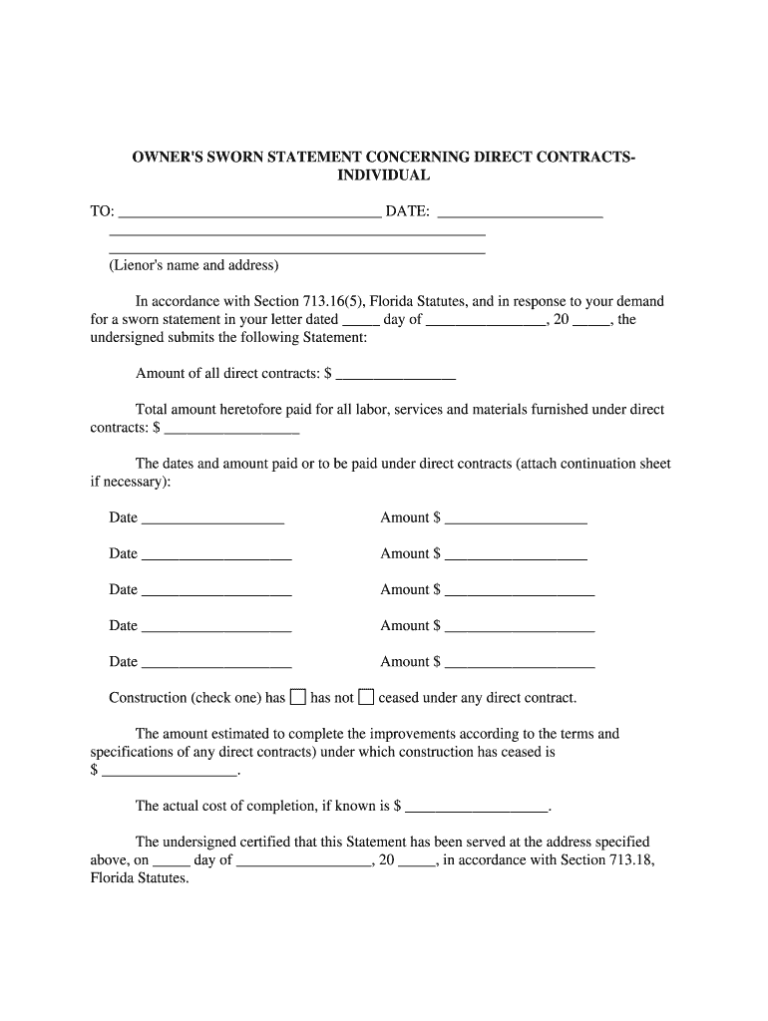Sworn Statement for Contractor Template (Word PDF) Free Trial