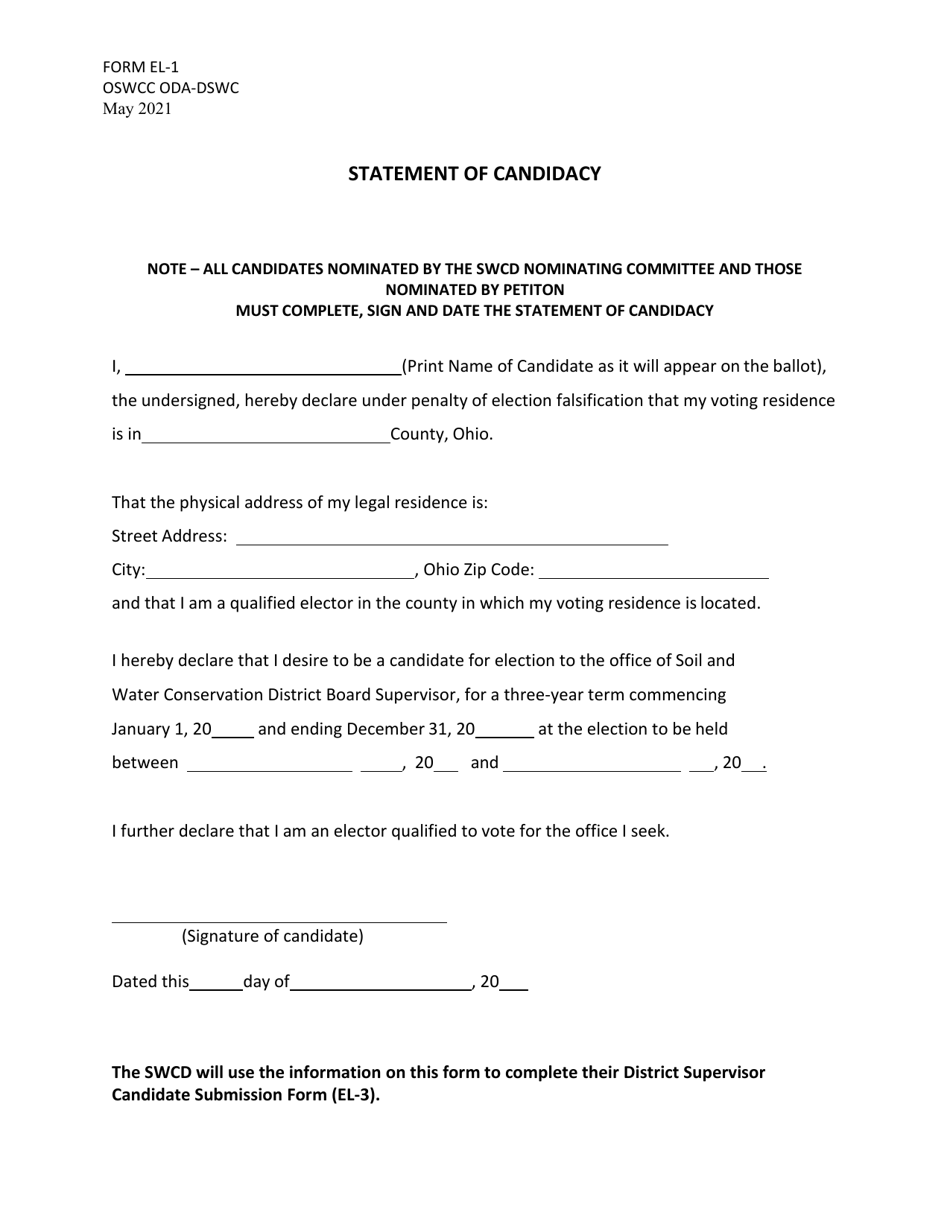 Form EL 1 Fill Out Sign Online and Download Fillable PDF Ohio