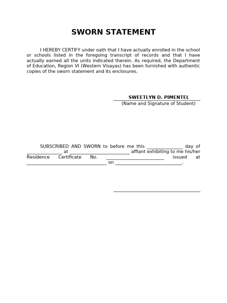 Here are some of the images for Sworn Statement Template that we found in our website database.