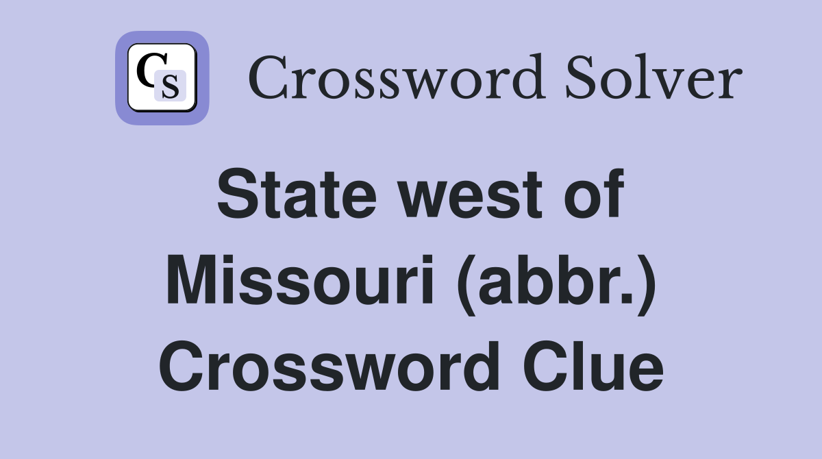 State west of Missouri (abbr ) Crossword Clue Answers Crossword Solver