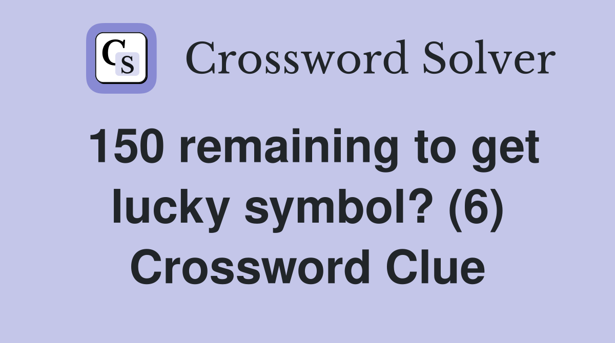 150 remaining to get lucky symbol? (6) Crossword Clue Answers