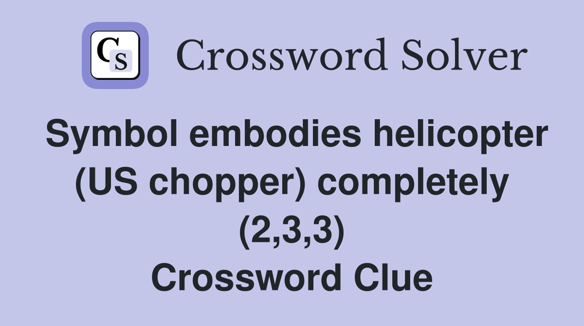 Symbol embodies helicopter (US chopper) completely (2 3 3) Crossword