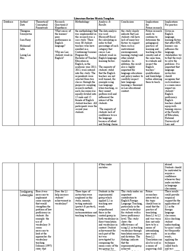 Literature Review Synthesis Matrix Template TERMINAR PDF Reading