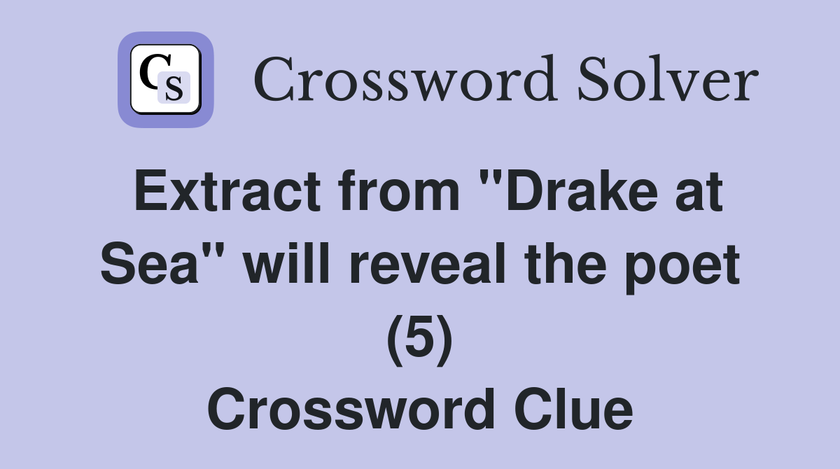 Extract from quot Drake at Sea quot will reveal the poet (5) Crossword Clue