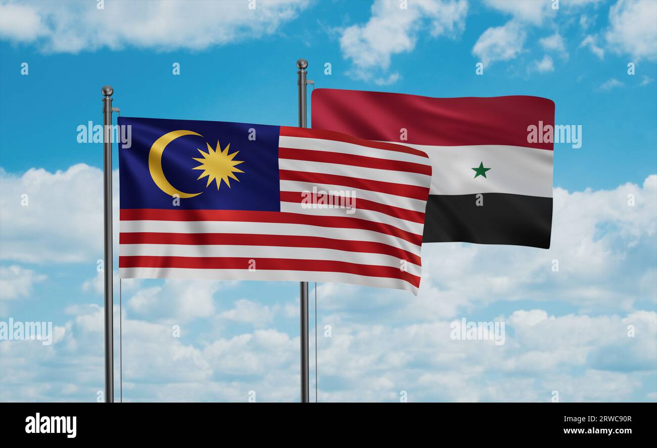 Syrian Arab Republic Syria and Malaysia flag waving together in the