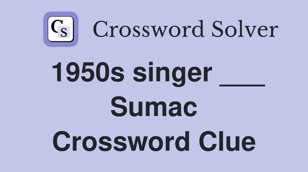 1950s singer Sumac Crossword Clue Answers Crossword Solver