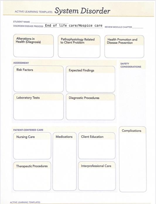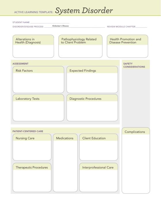active learning template: System Disorder STUDENT Chegg com