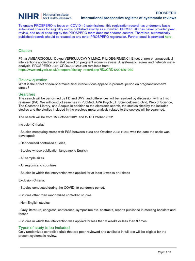 Prospero Template Protocol PDF Pregnancy Systematic Review