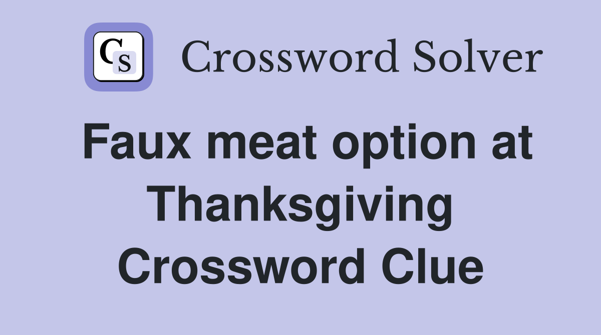 Faux meat option at Thanksgiving Crossword Clue Answers Crossword