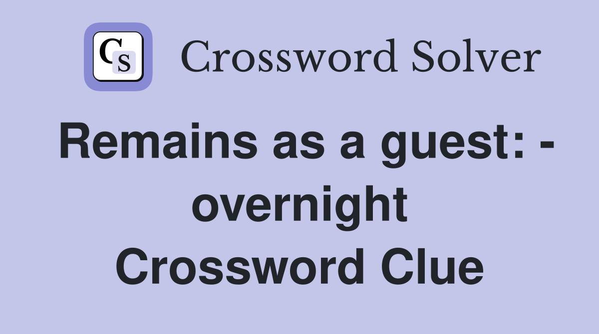 Remains as a guest: overnight Crossword Clue Answers Crossword Solver