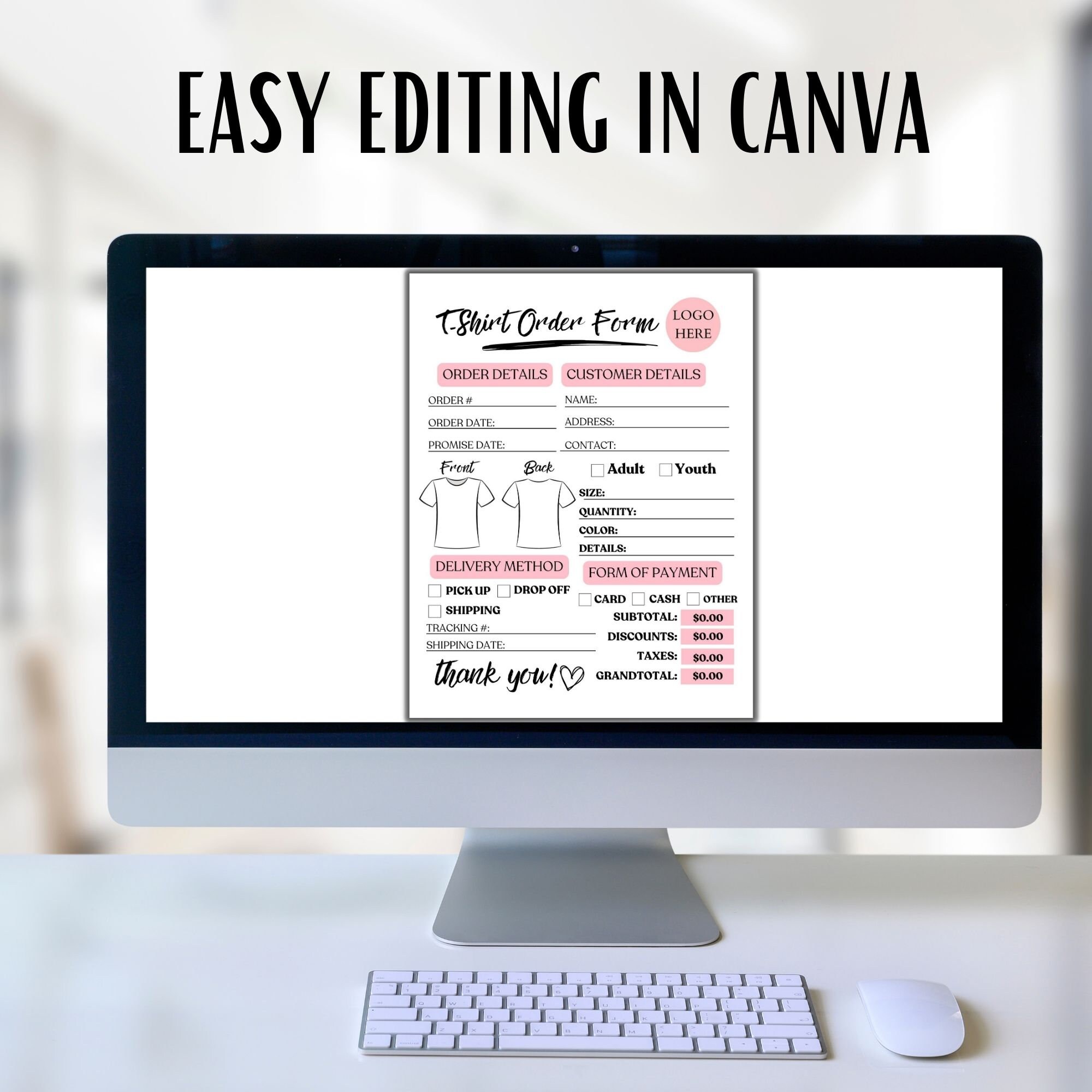 T shirt Order Form Template: Editable Canva Design (printable PDF
