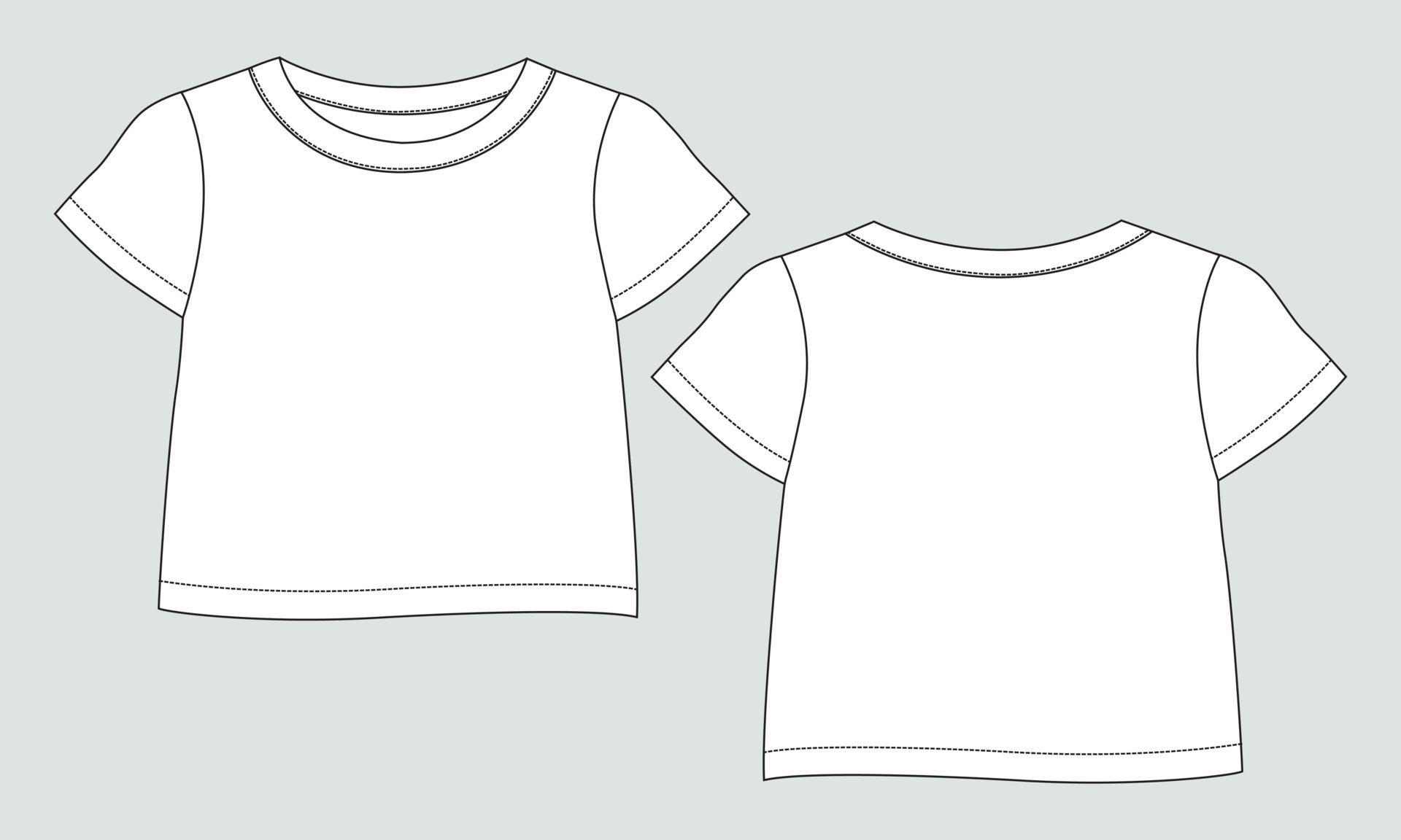 Short sleeve Basic T shirt overall technical fashion flat sketch vector