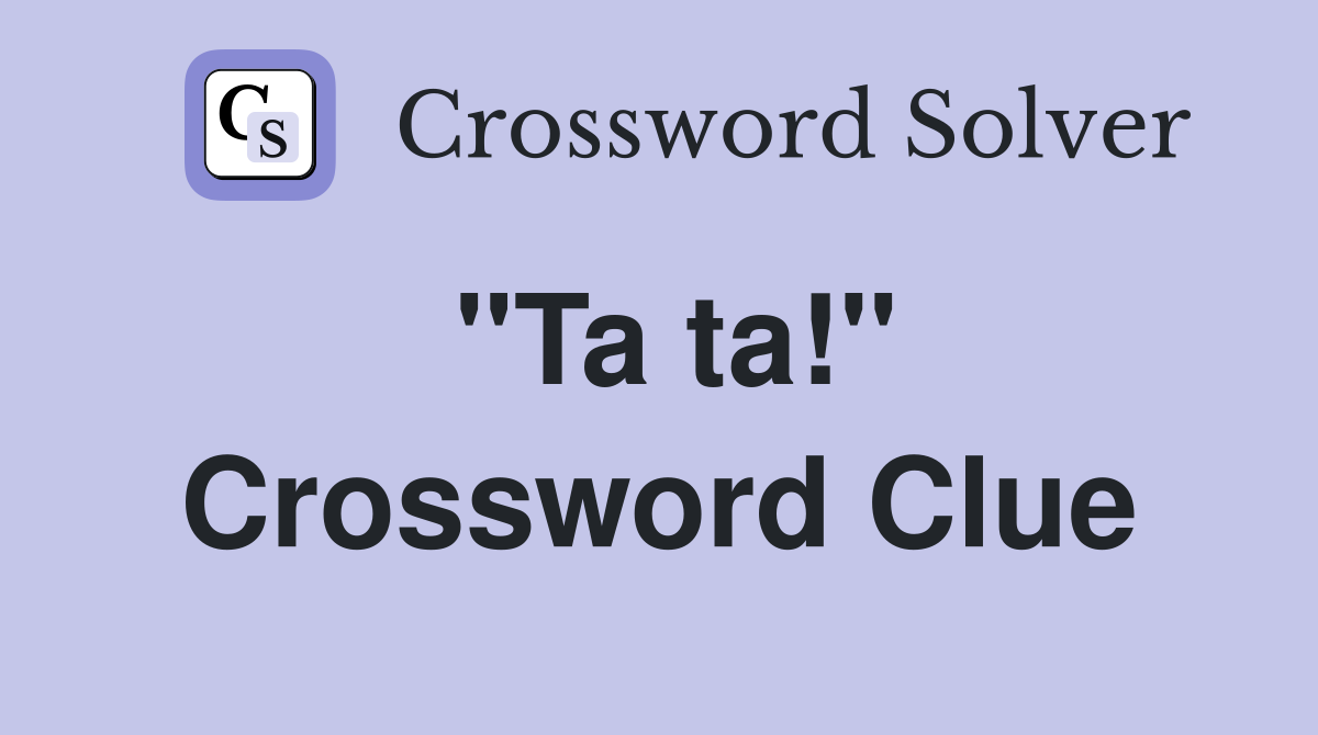 quot Ta ta for now quot Crossword Clue Answers Crossword Solver