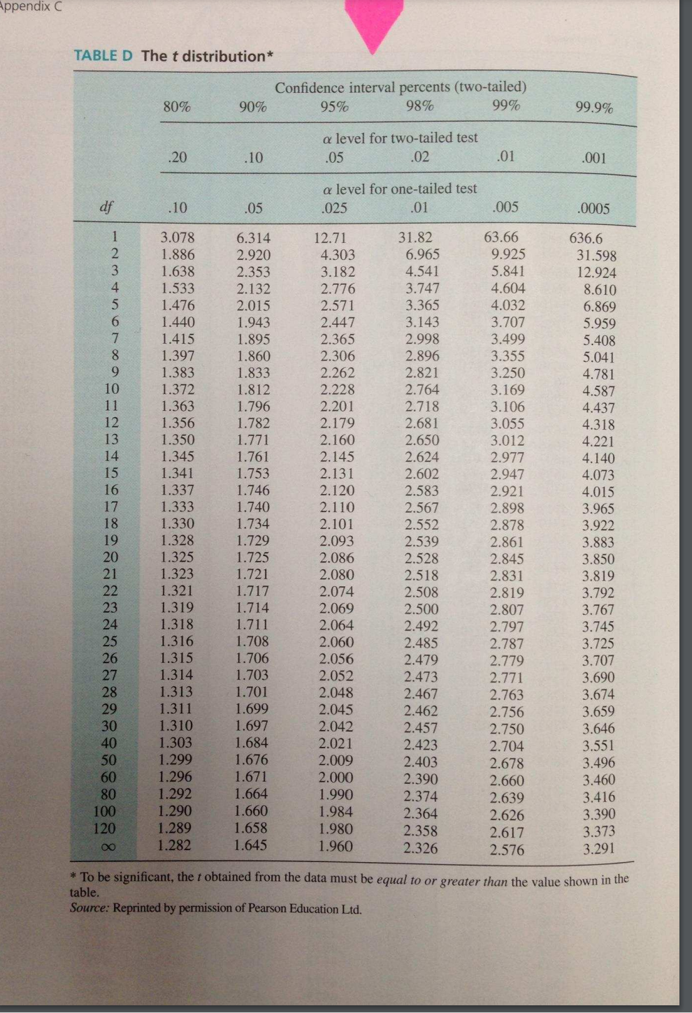 Solved TABLE D The t distribution* table Source: Reprinted Chegg com
