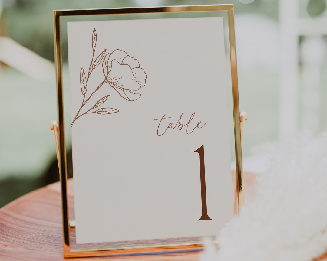 Modern Botanical Wedding Table Numbers: Hadley Template (digital