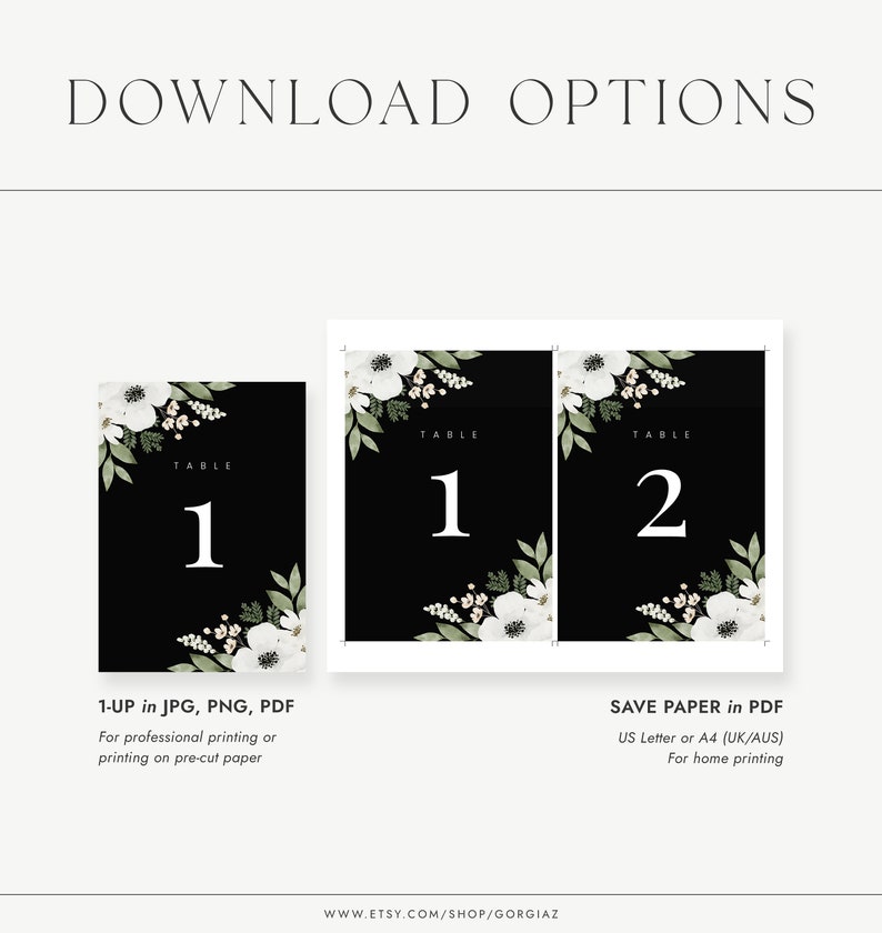 Table Number Templates Elegant Black Botanical Wedding Table Etsy