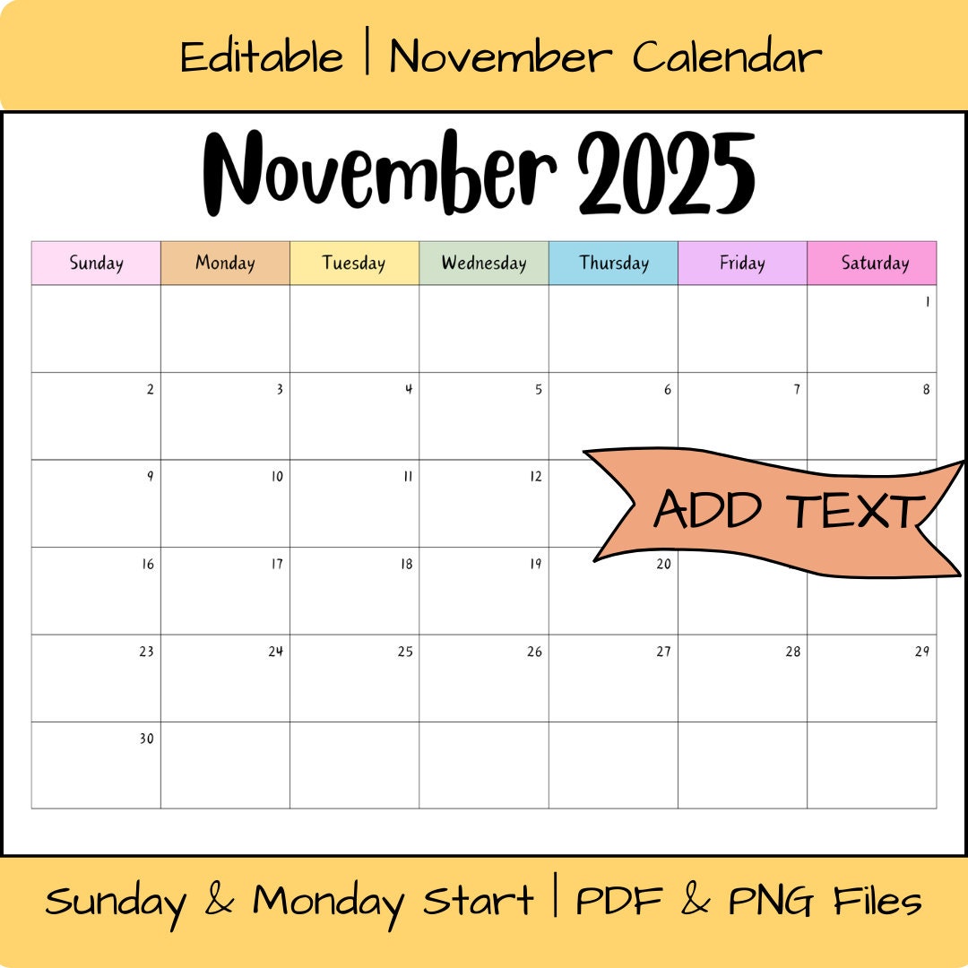 Editable November 2025 Calendar Printable Free 2025 Calendar Printable