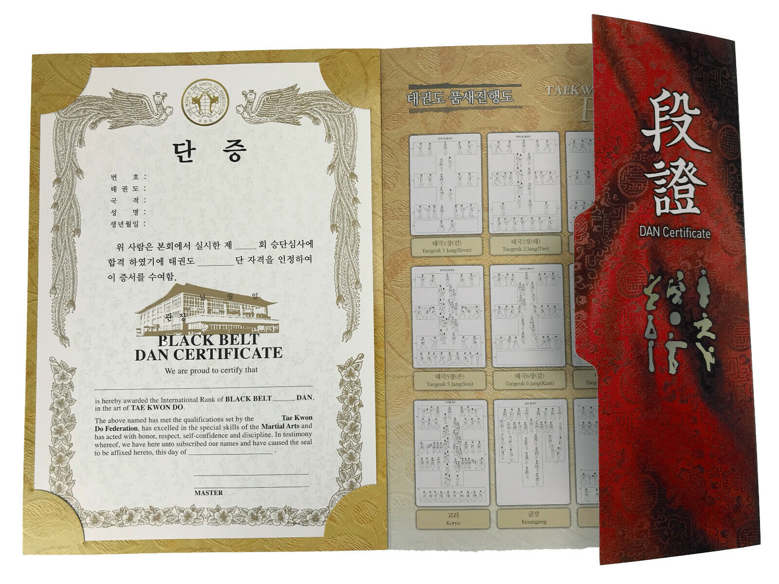 Taekwondo Dan Certificate with Case TKD Poomsae Black Belt Certificate