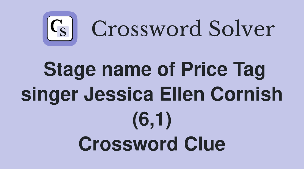 Stage name of Price Tag singer Jessica Ellen Cornish (6 1) Crossword