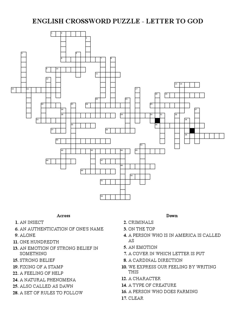 English Activity A Letter To God Crossword (With Answer Key) PDF
