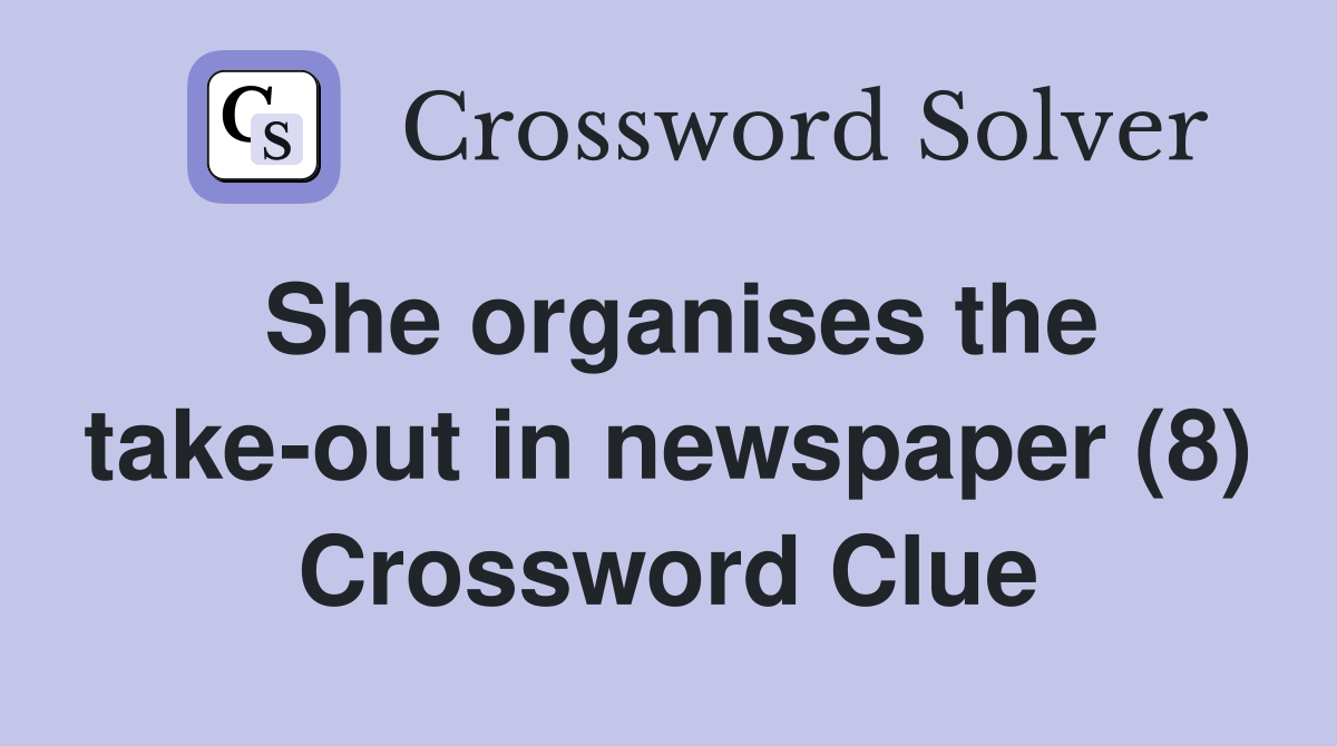 She organises the take out in newspaper (8) Crossword Clue Answers