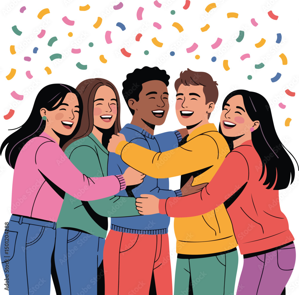 best friends forever group people hugging together and pose take