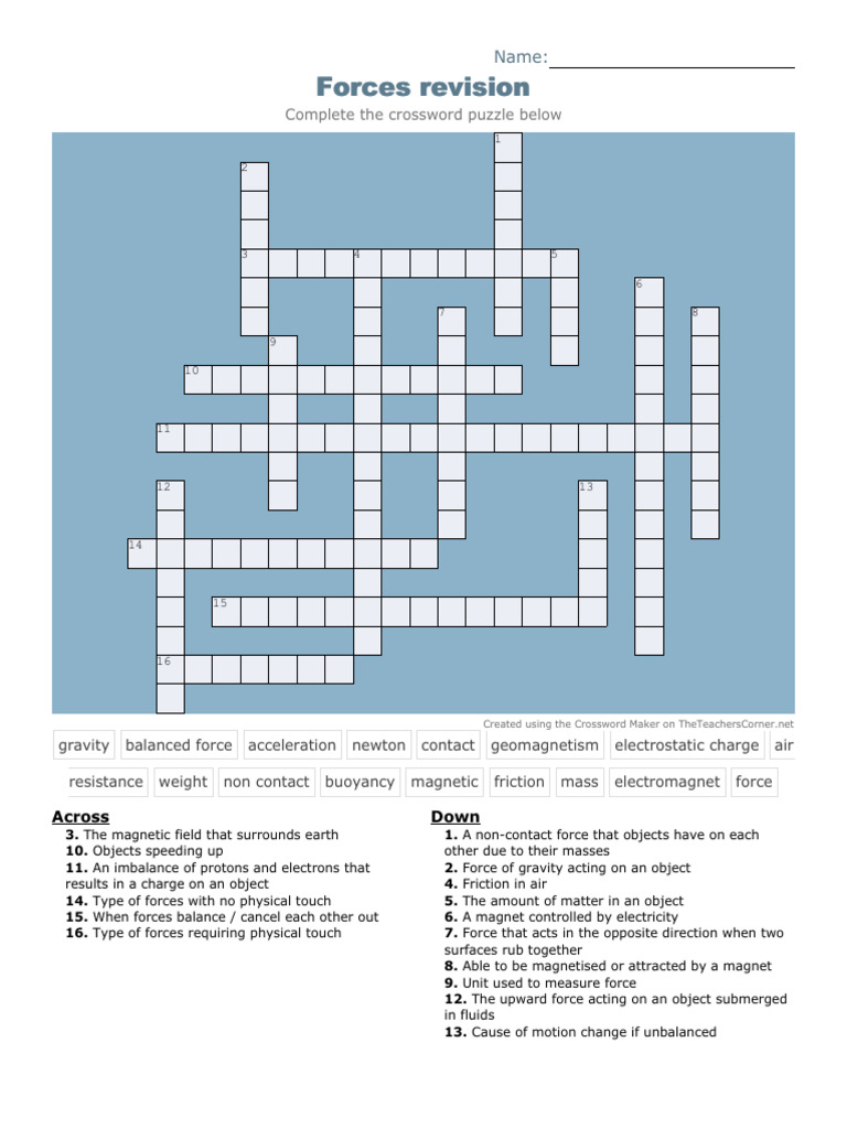 Crossword ieyasiC2fI PDF Force Electric Charge