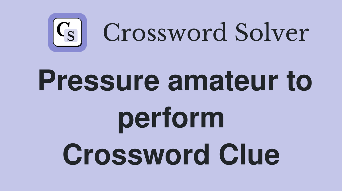 Pressure amateur to perform Crossword Clue Answers Crossword Solver
