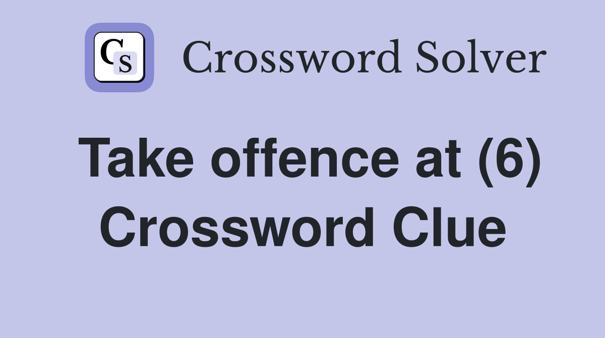 Take offence at (6) Crossword Clue Answers Crossword Solver
