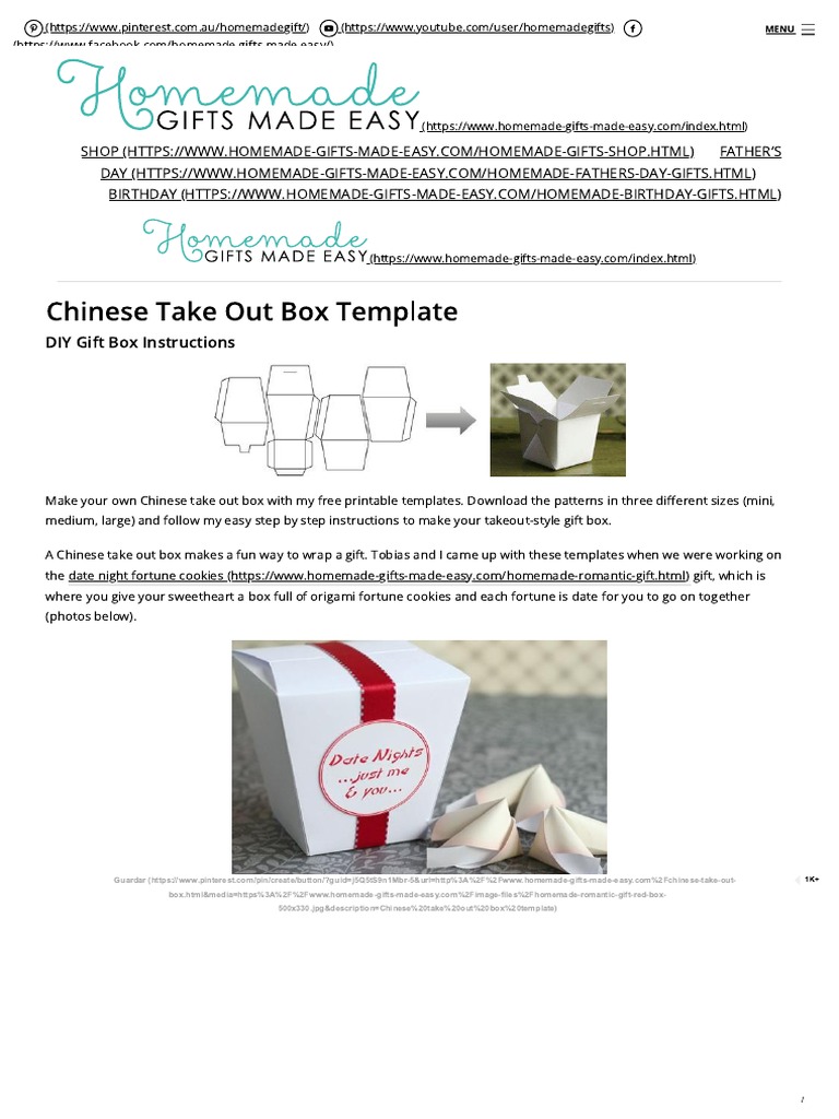 Chinese Take Out Box Template Instructions DIY Gift Containers PDF