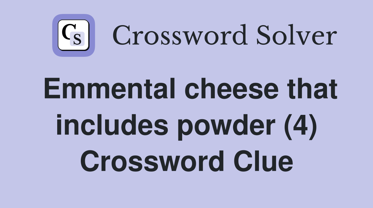 Emmental cheese that includes powder (4) Crossword Clue Answers