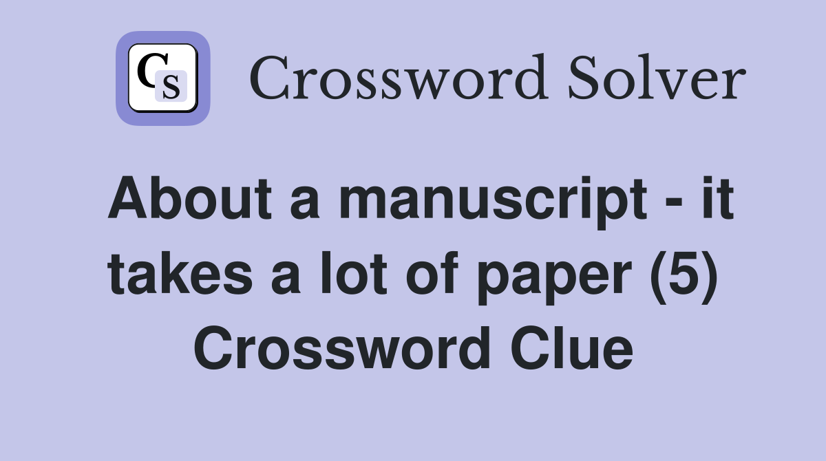 About a manuscript it takes a lot of paper (5) Crossword Clue