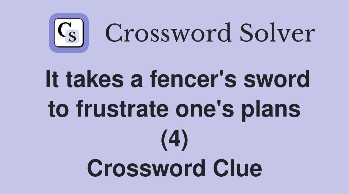 It takes a fencer #39 s sword to frustrate one #39 s plans (4) Crossword Clue