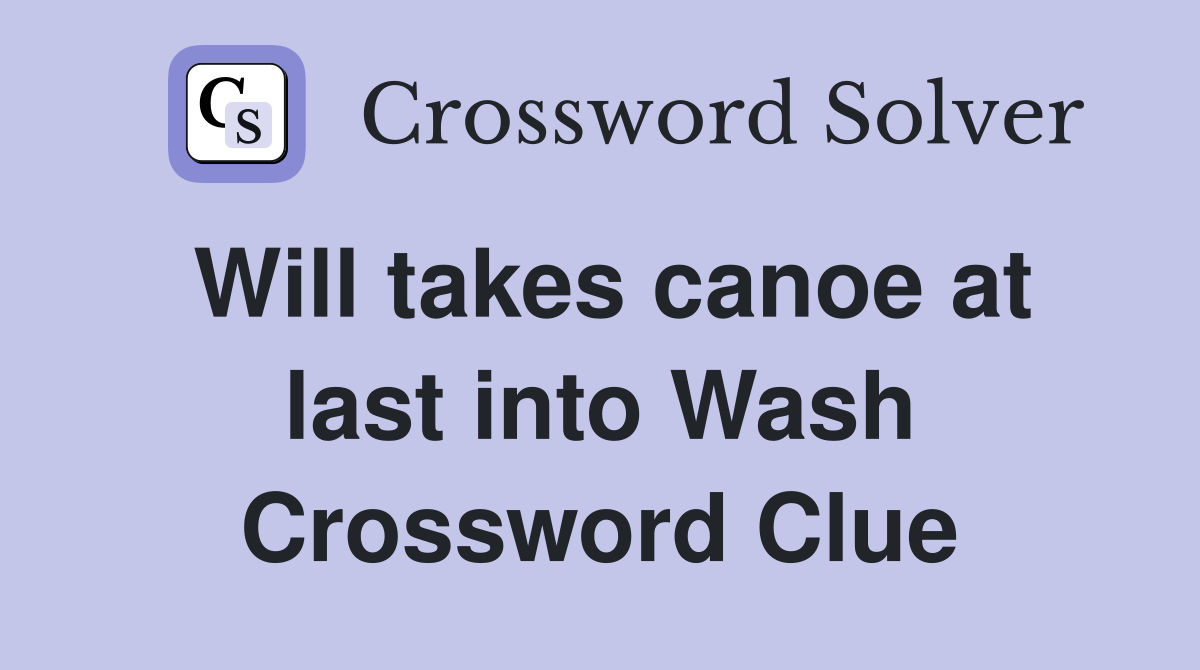 Will takes canoe at last into Wash Crossword Clue Answers Crossword