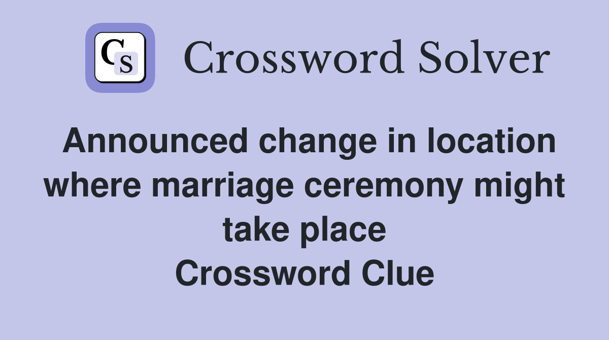Place to exchange vows Crossword Clue Answers Crossword Solver