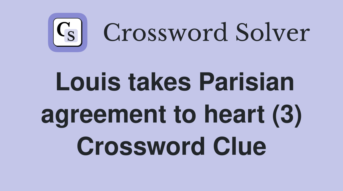 Louis takes Parisian agreement to heart (3) Crossword Clue Answers