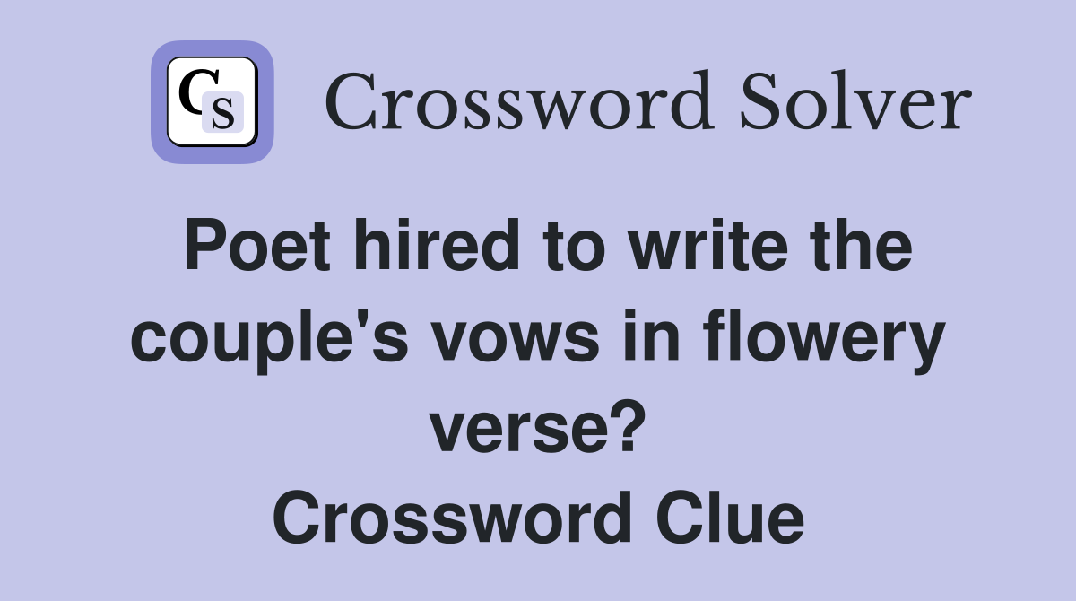 Poet hired to write the couple s vows in flowery verse? Crossword