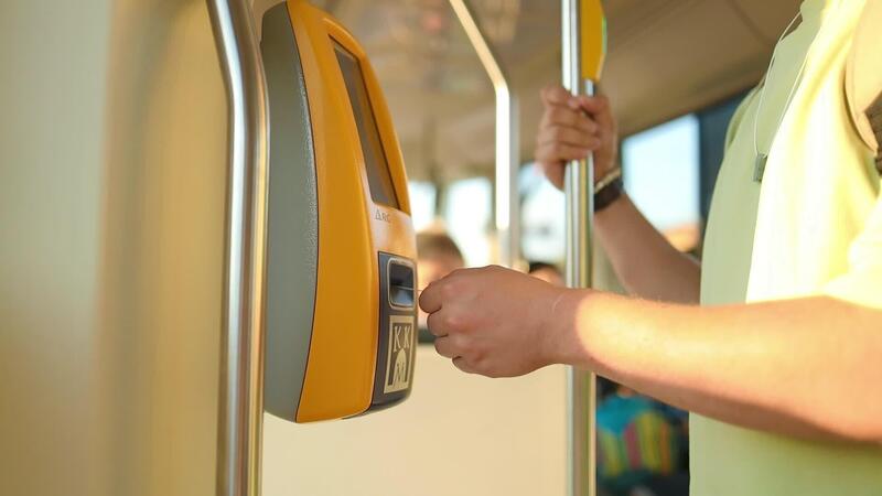 Man taking ticket from machine in the bus 28542400 Stock Video at Vecteezy