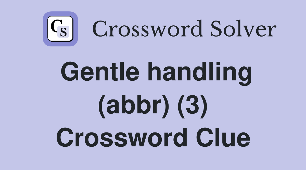 Gentle handling (abbr) (3) Crossword Clue Answers Crossword Solver