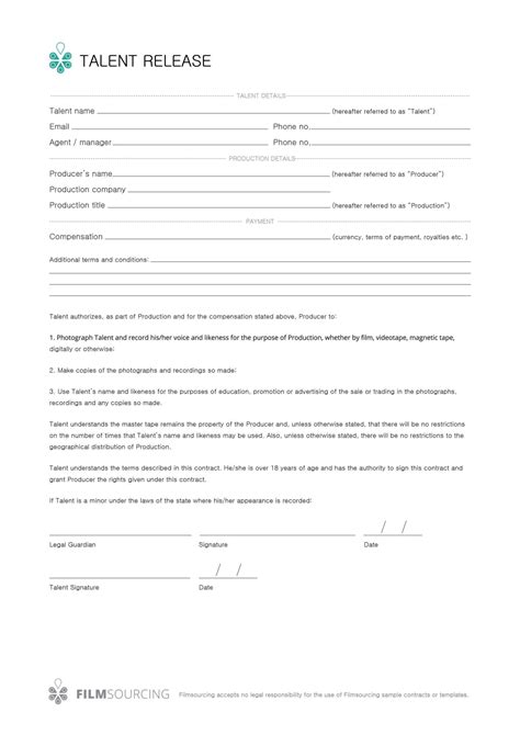 48 Talent Release Form Templates Photo / Video ᐅ TemplateLab