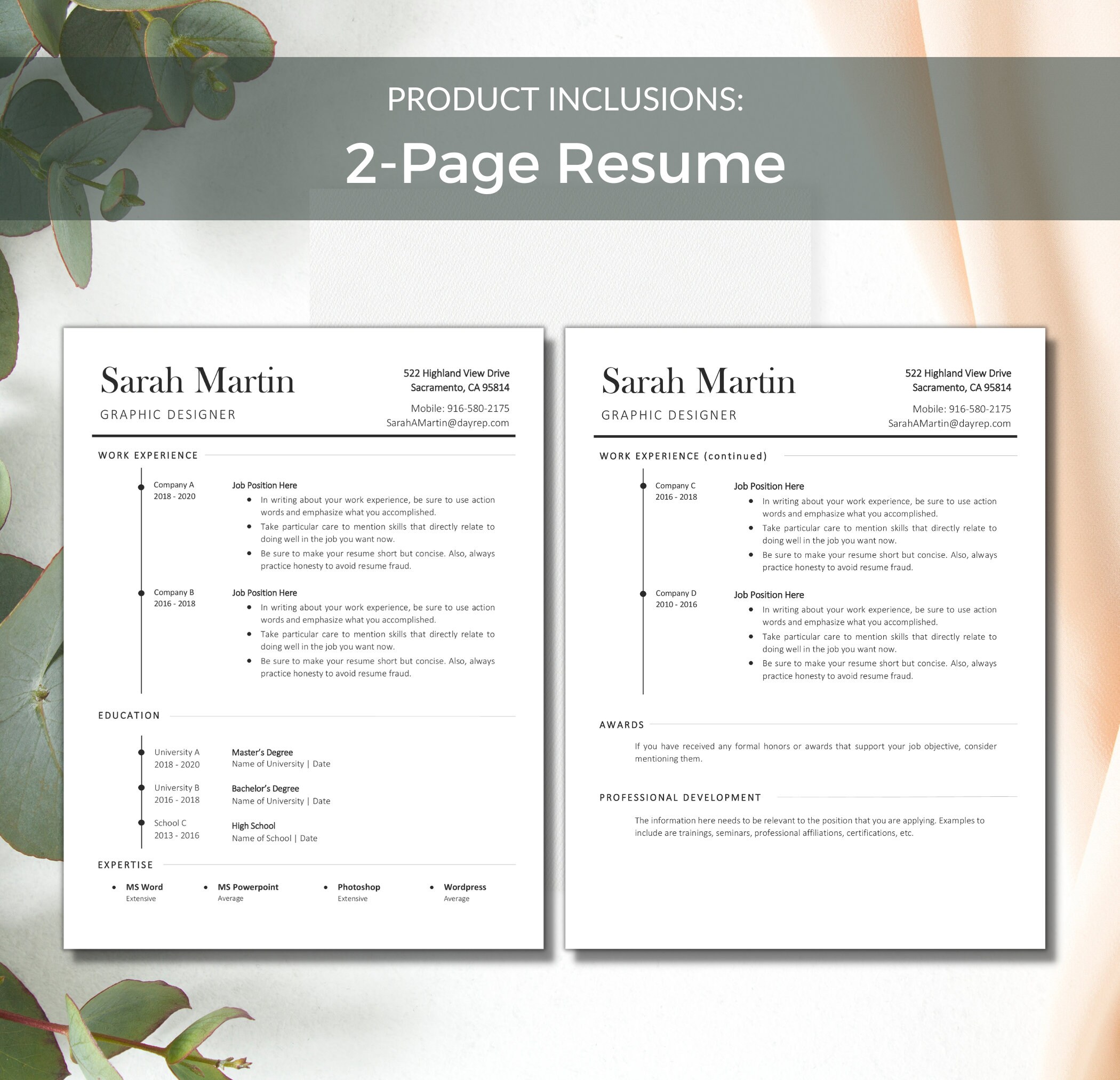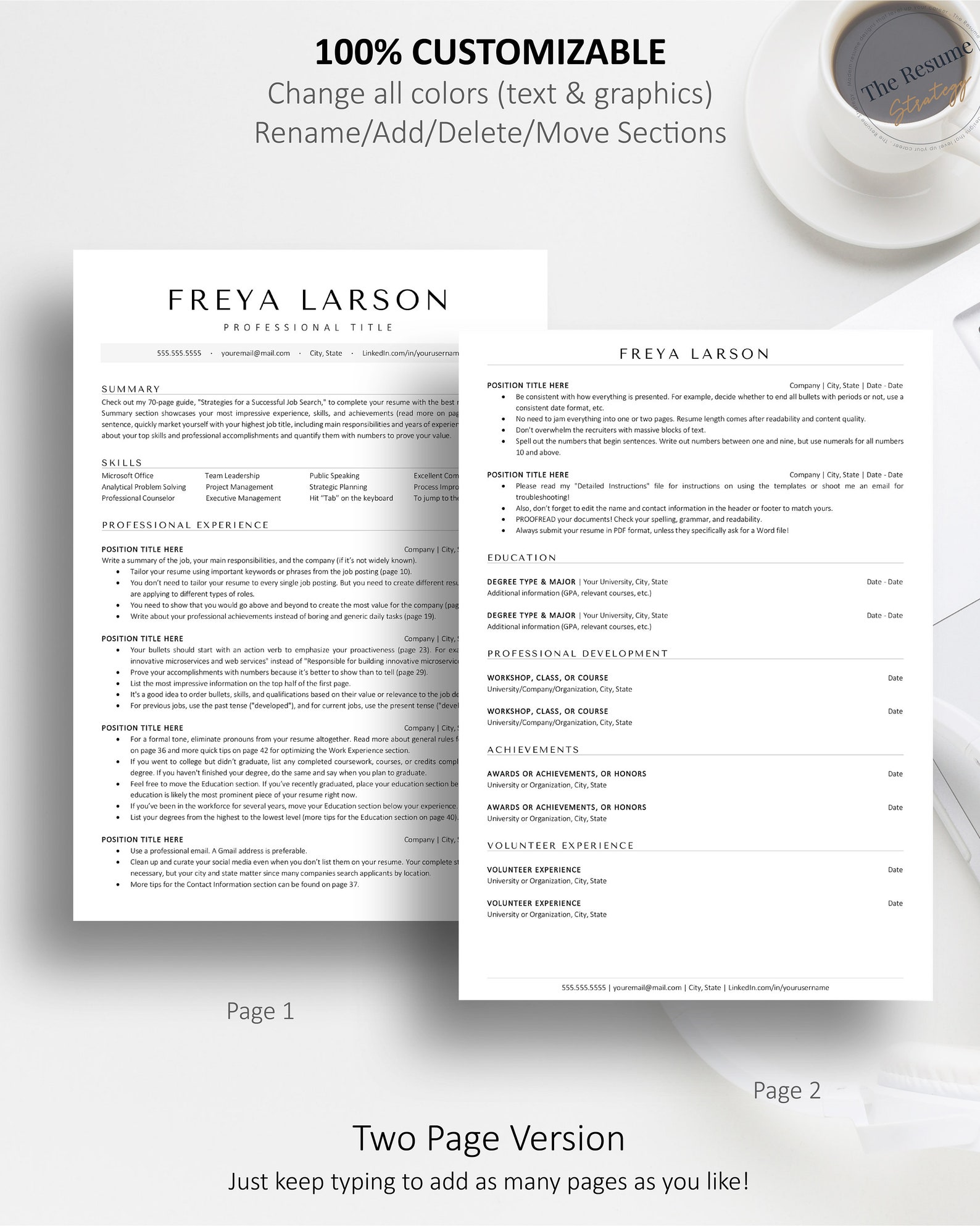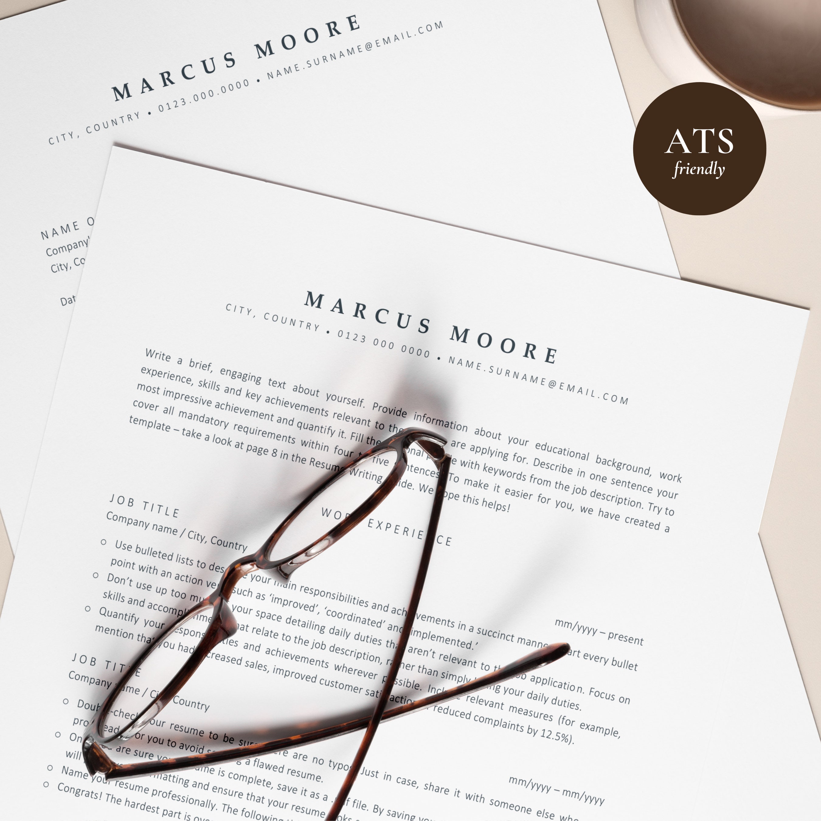 Ats friendly Resume Template Instant Download Etsy