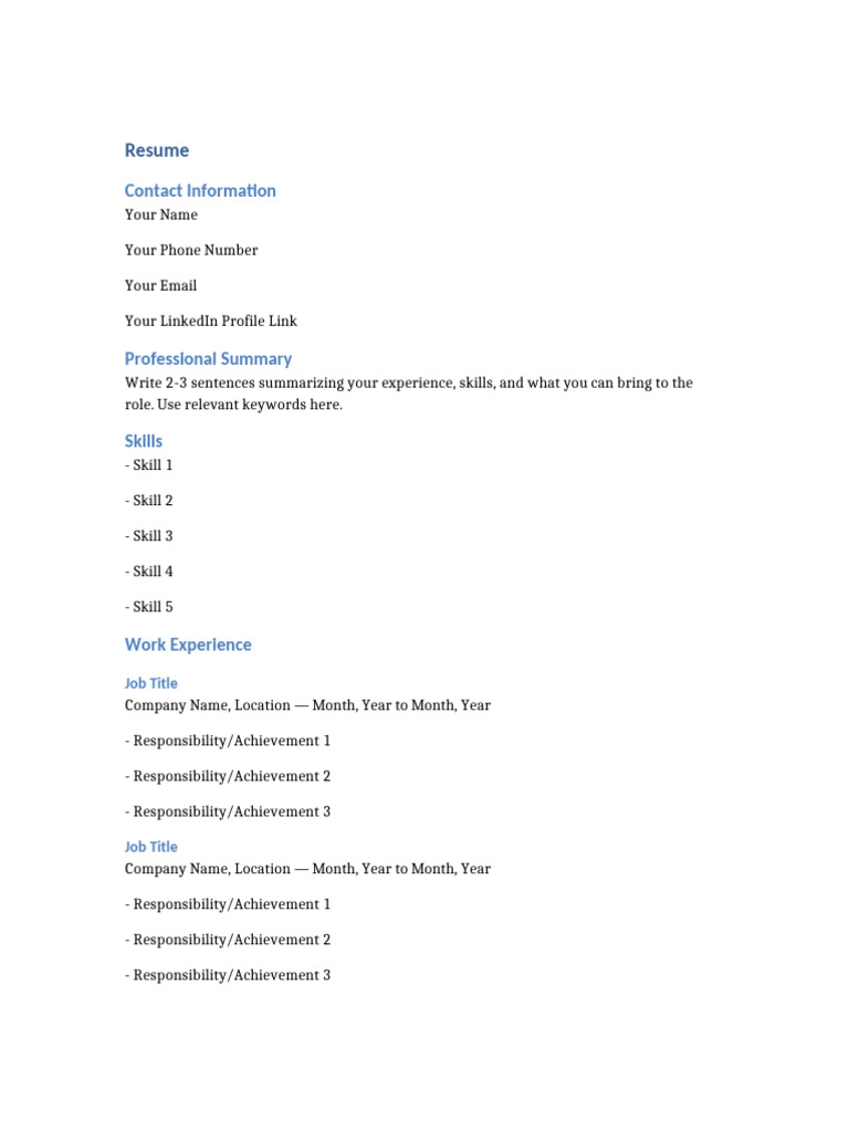 Taleo Resume Template